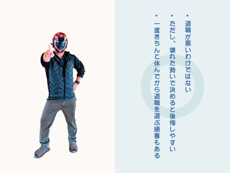 - 一度きちんと休んでから退職を選ぶ順番もある