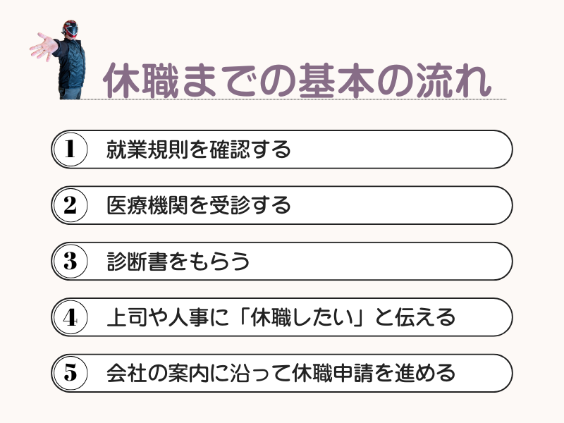 自分の不調を、医療と会社の両方に伝わる形で言語化し、必要な手続きを経て、回復のために止まることです。 流れとしては、次のようになります。