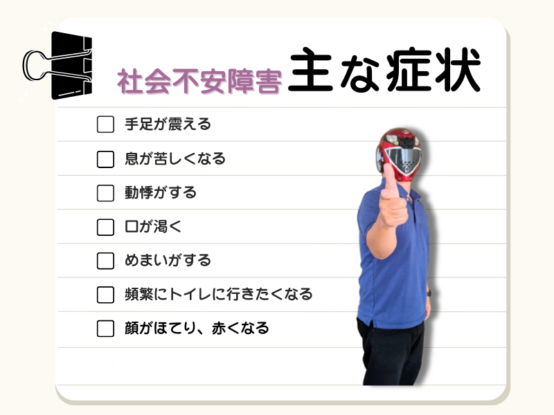 顔のほてり、口の渇き、動悸、息苦しさ、震え、めまい、吐き気、腹痛などの身体症状が出ることもあるとされています。
