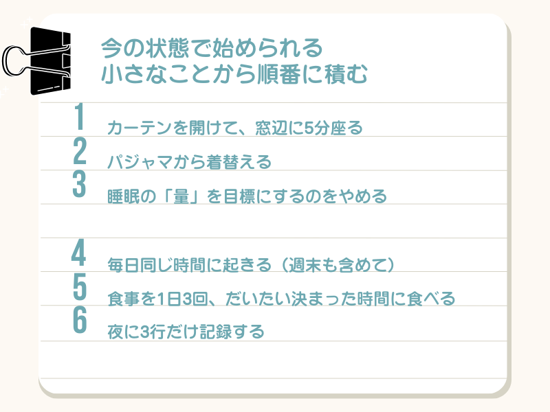 食事と睡眠が安定してきてから始めると、義務感ではなく自然に始めやすくなります。